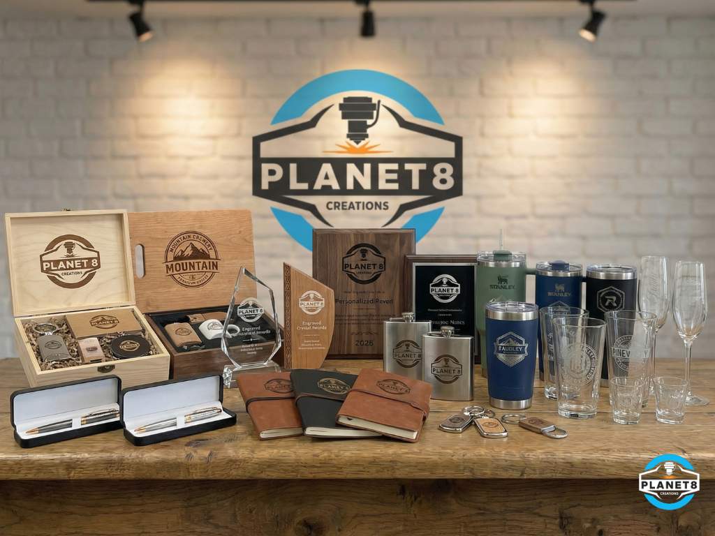 Laser engraving, DTF apparel, full-color drinkware, branded gifts, promotional products, and more — all made in-house and delivered locally or shipped fast.